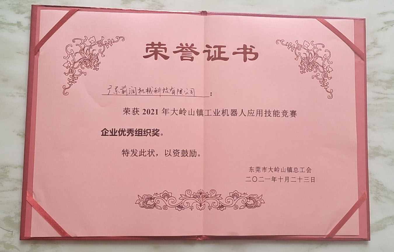 ▍ 廣東前潤機(jī)械科技有限公司優(yōu)秀企業(yè)優(yōu)秀組織獎
